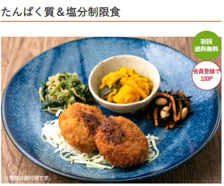 | 価格 | おまかせコース(通常コース)7食:4,173円 たんぱくケア おかずコース7食:4,588円 低糖質セレクトコース7食:4,173円 塩分ケアコース7食:4,588円 |